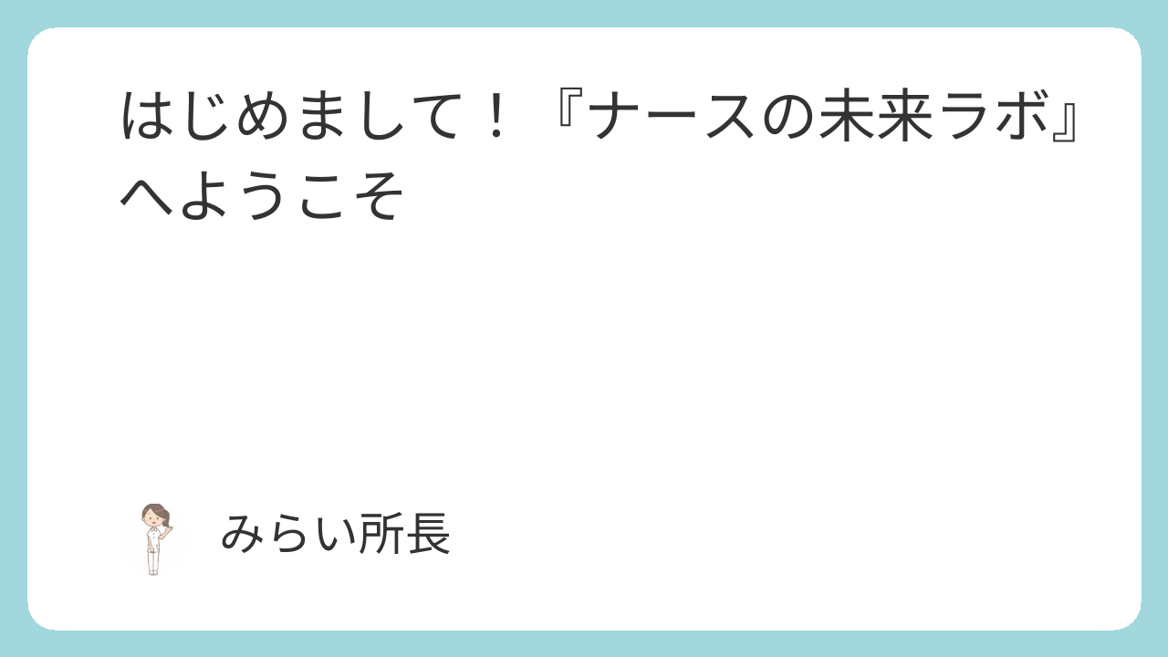 このサイト「ナースの未来ラボ」を運営している【みらい所長】です。